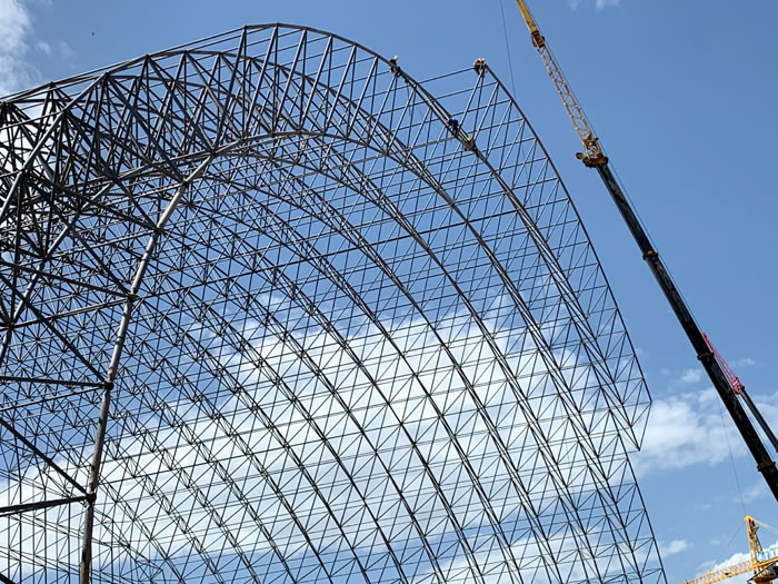 (2)网架加工前应对现场尺寸进行复测,确认无误后方可进行加工、安装;网架制作、运输、安装应遵守《空间网格结构技术规程》JGJ7-2010、《钢网架砀山螺栓球节点》JG/T 10-2009、《钢网架砀山螺栓球节点用高强度螺栓》 GB/T 16939-2016、《砀山钢结构砀山工程砀山施工规范》 GB50755-2012、《砀山钢结构砀山工程施工质量验收标准》 GB50205-2020。